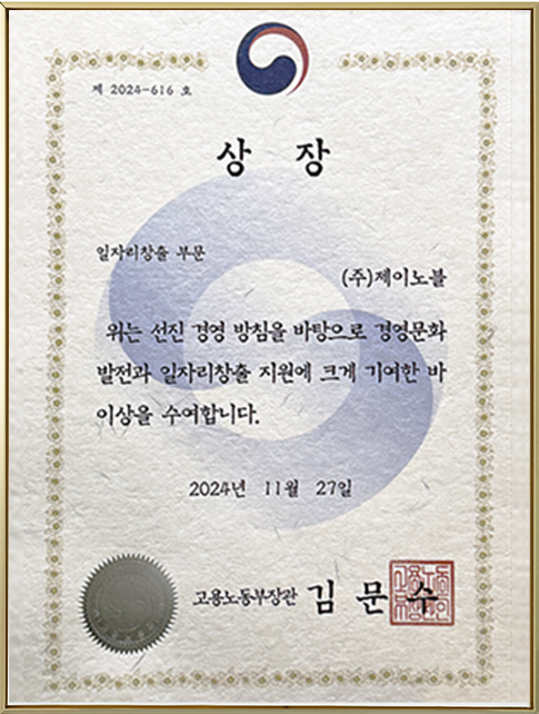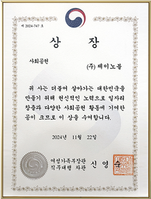 2024년 여성가족부 및 고용노동부 장관상을 수상하며 그 가치를 확고히 입증했습니다.